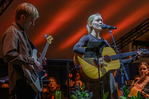 Den store Nytårskoncert i Ringkøbing trak et stort og entusiastisk publikum til og som årets overraskelse fra Kulturskolen optrådte Maria og Ketil med sangen ”Frit land”.